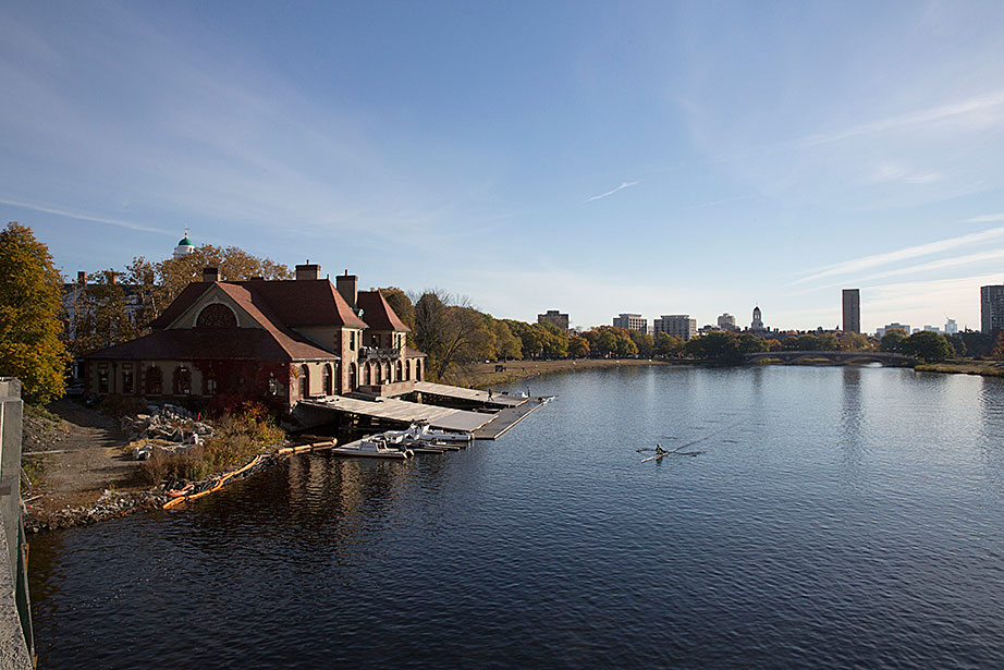 In Cambridge that same year, a permanent home for the art and sport of rowing was established when the family of George Walker Weld built the Weld Boathouse. With 8 miles fit for rowing and a six-lane, 2,000-meter racecourse, the Charles River is a favored site for the sport, used by some of the country’s finest collegiate programs. Weld Boathouse is home to the Radcliffe lightweight and heavyweight crews, as well as Harvard’s recreational sculling and intramural House crew programs. It also supports a wide range of fitness programs, including yoga, cycling, and weight training.
