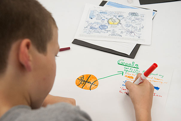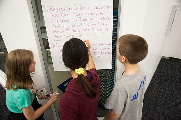 Students reviewed goals as parents joined in conversation about preparing their children for college. Teens to elementary school-age youngsters were part of the workshop at the Harvard Ed Portal.