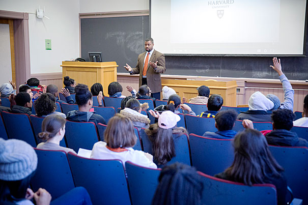 Blackett’s speech served as a catalyst for the Work Force students who participated in a series of programs at Harvard designed to bolster career exploration and college awareness. It was at the close of their February break that the 32 students convened in Annenberg Hall, where some of them had attended Project Teach, an educational program that has been bringing students to Harvard for more than 20 years.