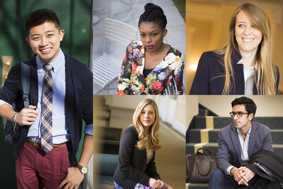 A timeless, clean aesthetic flourishes at HBS with Taniel Chan (clockwise from left), Olamide Oladipo, Alessandra Pelliccia, Nikhil Lohchab, and Christy Stine. “I like to keep it pretty simple in terms of what I wear. I do like to mix prints. I’m Middle Eastern and I think that inspires the prints I choose to wear,” says student Janine Khraishah. Fashion icons: “I like Emma Stone because she is not afraid to mix it up with color. I like Amal Alamuddin because she is very good at looking classy but has fun with her style at the same time. And Michelle Tanner — it’s all about the ’90s.” Style at HBS: “It’s very fashionable but with a clean aesthetic. People look good, but not like they tried too hard to look good.” “Be recognizable to cultivate a public persona that gives you strength, confidence, and joy,” says Sandra Sucher, professor of management practice. Fashion icon: “Iris Apfel has introduced the world to global fashion. And no one has done more to show the meticulous craftsmanship and gorgeous variety of beauty around the world.” Favorite item: “Scarves are a cheap thrill. You can have the same black jacket and wear it an infinite number of days and look different. And they are very different. It’s a way to personalize and commemorate. I’m wearing one that was my mother’s today.” Student Taniel Chan’s favorite accessory is a watch his sister gave him for his birthday. “If I leave my house without my watch, it kind of ruins my day a little bit.” Style philosophy: “I like to be minimalistic when possible. I try to keep my outfits simple and clean. Something that doesn’t stand out too much, but that people can still appreciate from afar.”