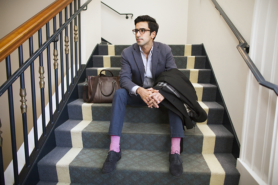 Reading: “What Money Can’t Buy” by Michael Sandel. “My guilty pleasure is reading The Economist.” “I think fashion makes you look good, but style is what is intrinsic and makes you feel good,” says student Nikhil Lohchab. Style philosophy: “The core of the way you want to present yourself comes from your style.”