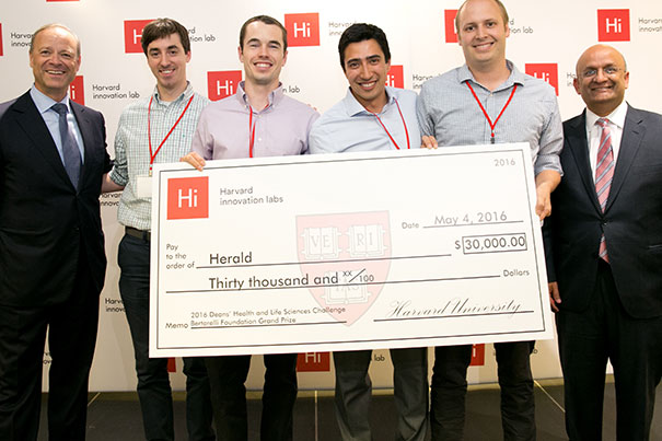 The winner of the $30,000 grand prize in the Bertarelli Foundation Deans’ Health and Life Sciences Challenge was Herald, which makes health care safer by offering clinicians real-time access to their clinical data. Pykus Therapeutics, which is developing a dissolvable intraocular device to make retinal surgery less painful, won the $25,000 Health and Life Sciences Challenge prize.
