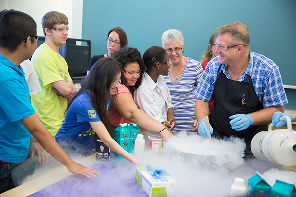 A recent day found two dozen high school students on Harvard’s campus making ice cream out of berries, heavy cream, and a healthy dose of liquid nitrogen. The class instructors mixed and stirred as a fog poured out of a bowl that contained the experiment, while the students looked on in fascination.
