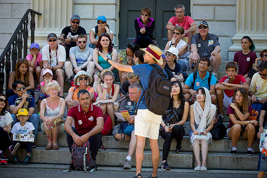 Wearing sun hats and armed with selfie sticks, iPhones, and video cameras, tourists from all over the world visit Harvard Square and Harvard University each summer. Giant tour buses idle on Mount Auburn Street near Lowell House as their passengers march from bus to Square to Yard to Statue and back again. They hear the stories we’ve heard many times before: the Three Lies, the Titanic disaster, and the only surviving book from Harvard Hall. Photos are taken — many, many photos — and memories are made as the next bus arrives.