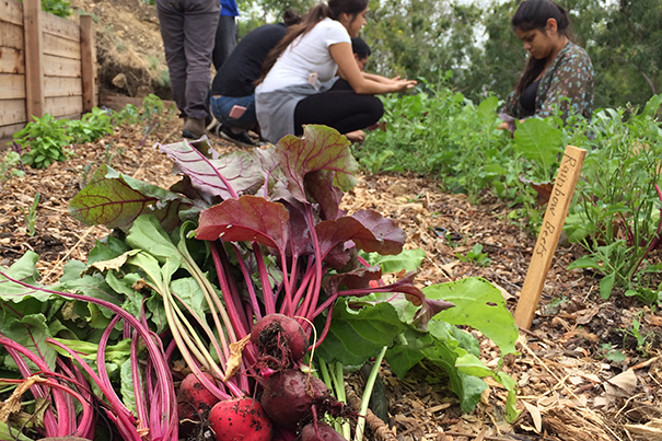 Students harvested beets for the weekly Lincoln Heights Farmers Market, where they gained entrepreneurial skills selling produce, herbs, and succulents from the farm. Photo by Amanda Beattie