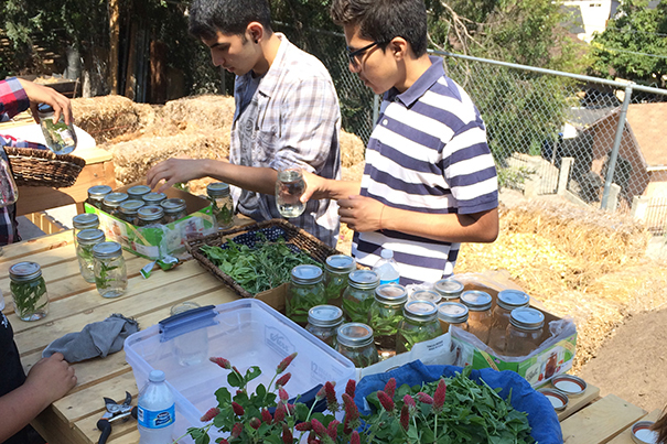 For 20 days in mid-summer, 10 to 15 LALA high school students showed up every day, eager to farm. We’d pump the tunes and enthusiastically dig, plant, build, harvest, learn about food justice, and brainstorm for the Lincoln Heights Farmers Market, where we soon began to sell bunches of herbs and other treasures from the farm’s first summer.