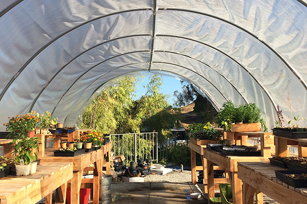 Los Angeles Leadership Academy had a hoop house on the roof of the school, where seedlings were started and nurtured before being transplanted into beds on the hillside. Photo by Amanda Beattie