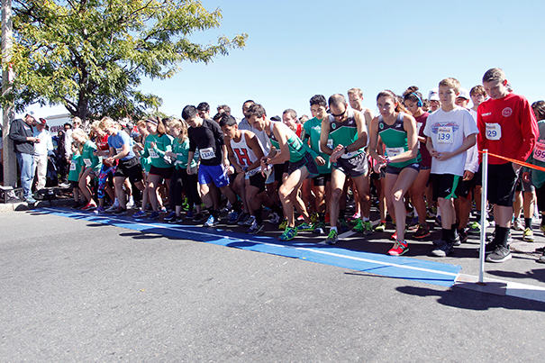 Runners set their feet and watches as they wait for the starting pistol at the 13th annual Brian J. Honan 5K Run. Photo by Stew Milne