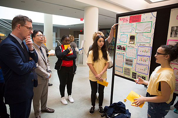 Superintendent of Schools Kenneth Salim, a 2011 alumnus of the Harvard Graduate School of Education, said he was impressed with the depth of knowledge on display. He encouraged students to keep thinking and keep asking questions, as they did when working on the projects. “I challenge you to continue to pursue things that are interesting to you, to think about problems that you can solve, or ones that affect you, your family, or the larger world.”