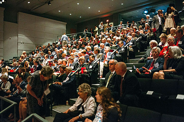 Faust carried over the theme of change from the evening’s earlier faculty conversation. Titled “The Art of Change,” Archon Fung, academic dean and Ford Foundation Professor of Democracy and Citizenship at Harvard Kennedy School, and Sarah Lewis ’01, assistant professor of history of art and architecture and African and African American studies in the Faculty of Arts and Sciences, along with facilitator Erik Takeshita, M.P.A. ’06, discussed the powerful relationship between the arts and civic engagement. The topic was especially relevant in Minnesota, which has a rich arts tradition and received the third-highest dollar amount among the states in the most recent round of grants from the National Endowment for the Arts.