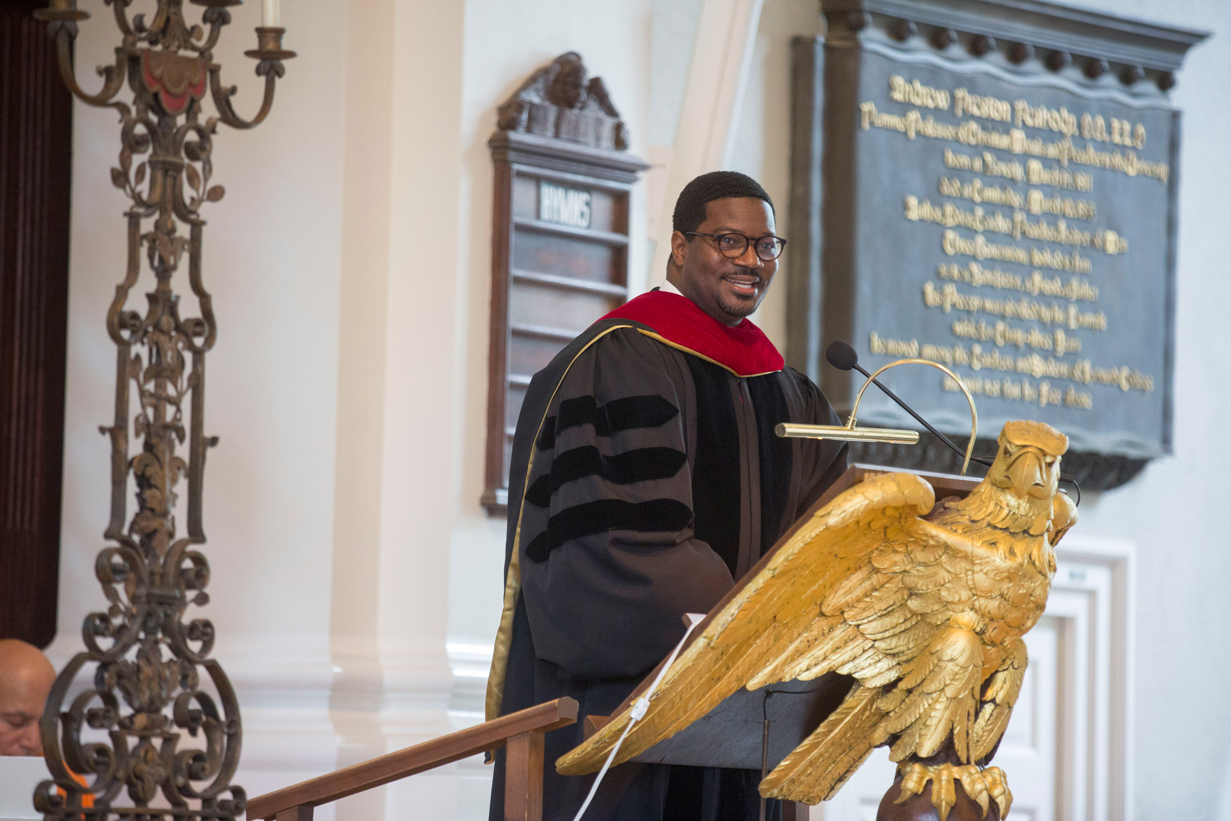 “Harvard has been an incredible place for me professionally and for my family, personally. We developed incredible relationships that I am certain will stand the test of time and distance,” said Walton, an ordained Baptist minister whose research focuses on the intersections of religion, politics, and media culture. “The Memorial Church embraced me and helped me to grow intellectually and spiritually. Over the past seven years, I feel that we have extended that embrace to a wide array of people from varying walks of life. Those who gather today at Mem Church are both younger and more colorful, literally and figuratively, than when I arrived.”