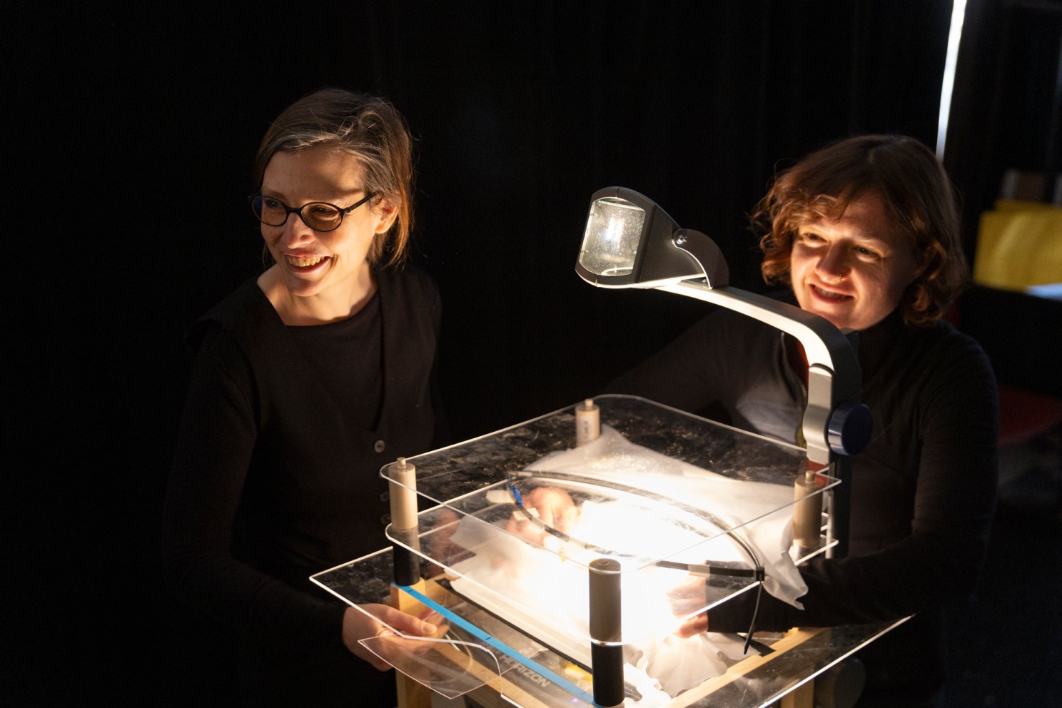 Kate Brehm knelt behind a backlit screen in a Loeb Drama Center rehearsal room, holding a shadow puppet of the character Penelope from Homer’s “Odyssey.” Brehm and puppeteer Abigail Baird were discussing the movements required to ensure a sharp silhouette of the puppet during a scene in the A.R.T.’s new stage adaptation of the epic poem.