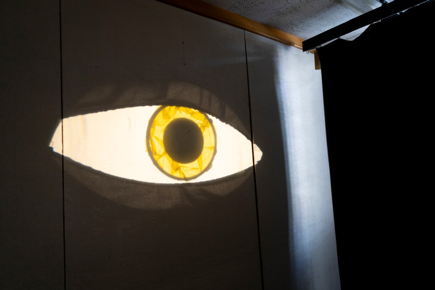 Brehm (left) and Abigail Baird project the Cyclops’ eye.