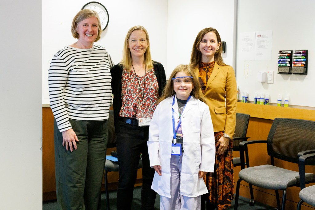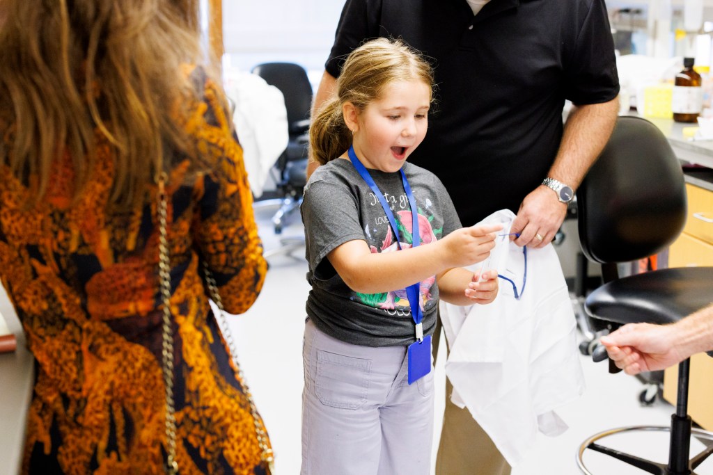 Hoekstra, the Edgerley Family Dean of the FAS, thanked her for her donation and presented her with her own small lab coat and protective eyewear.